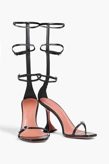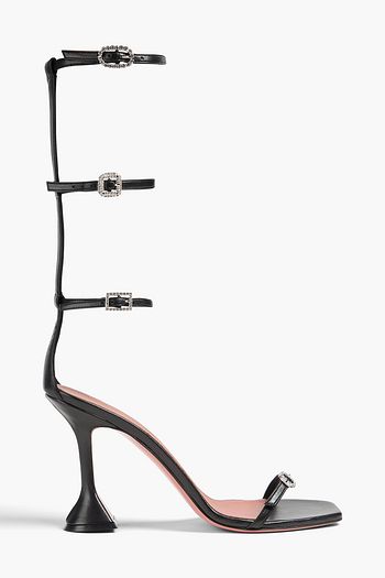 Camelia パール光沢レザー スリングバックパンプス クリスタル付き