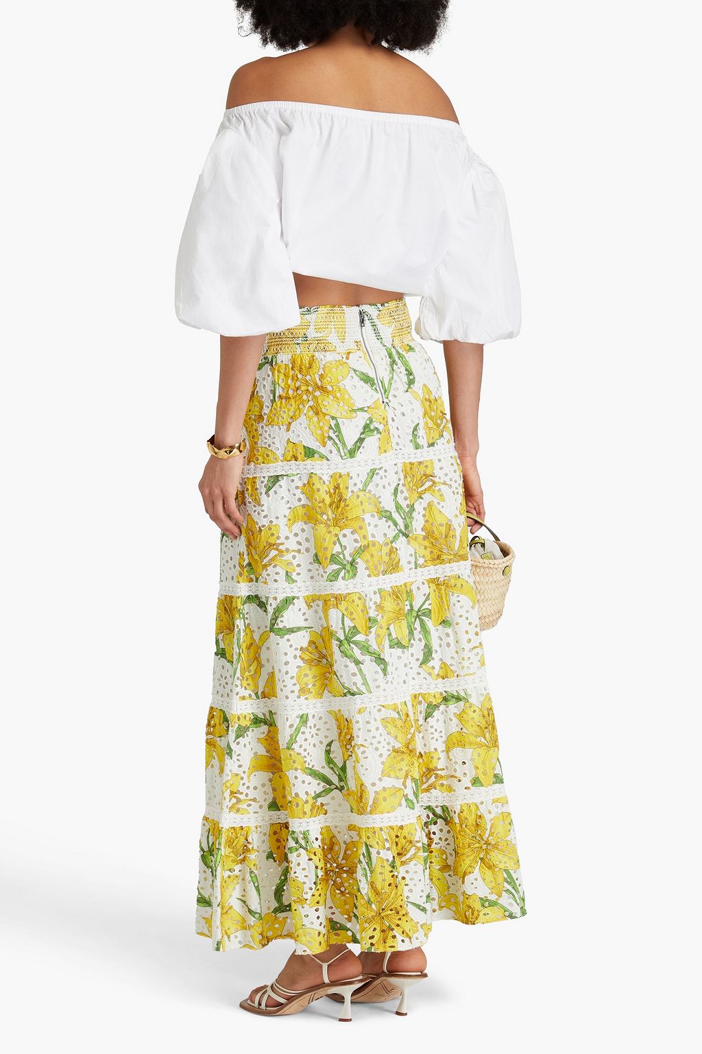 ALICE + OLIVIA コットン マキシスカート ティアード フローラルプリント イギリス刺繍