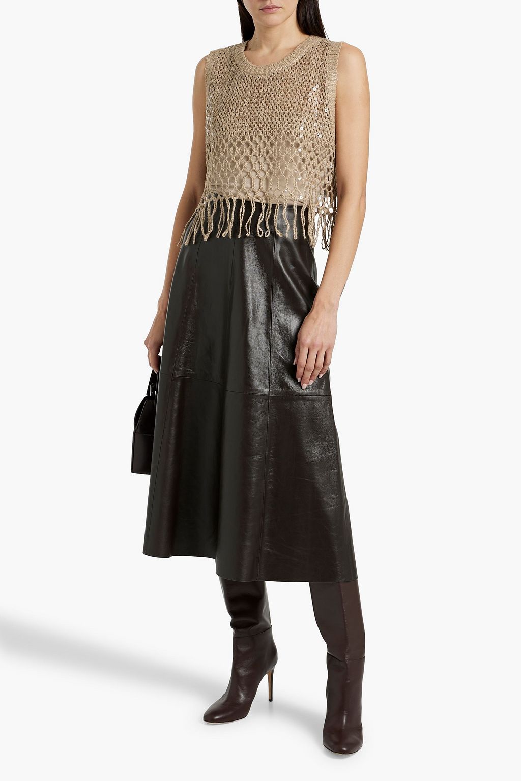 BRUNELLO CUCINELLI オープンニット シルク&リネン混 トップス フリンジ付き