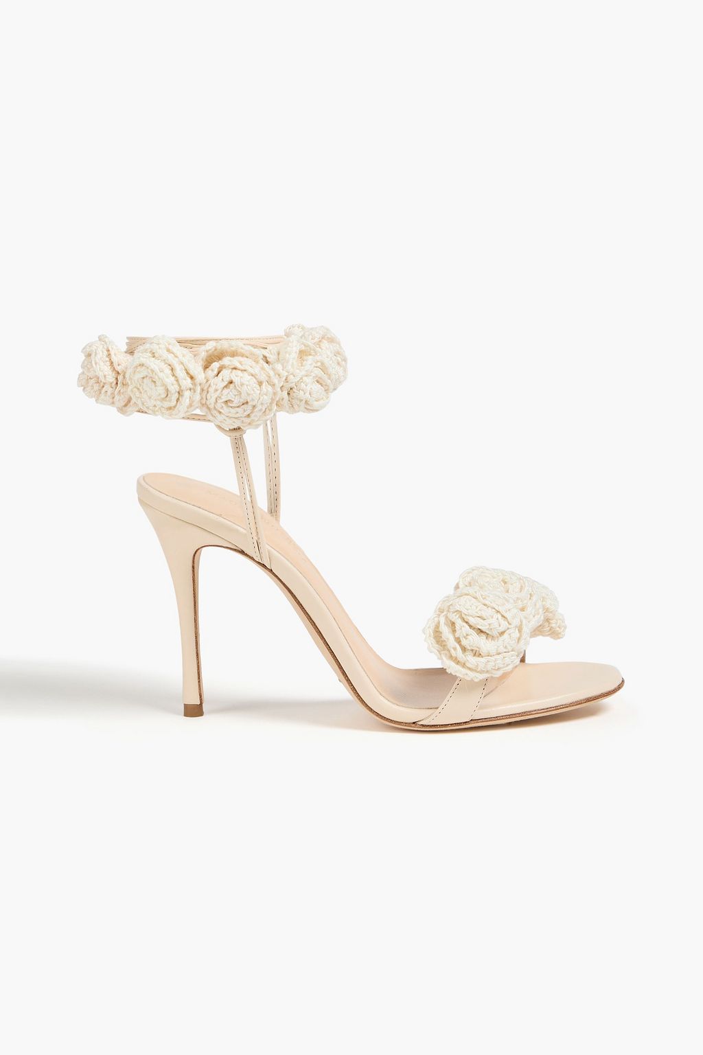 MAGDA BUTRYM かぎ針編み&レザー サンダル フローラルアップリケ付き