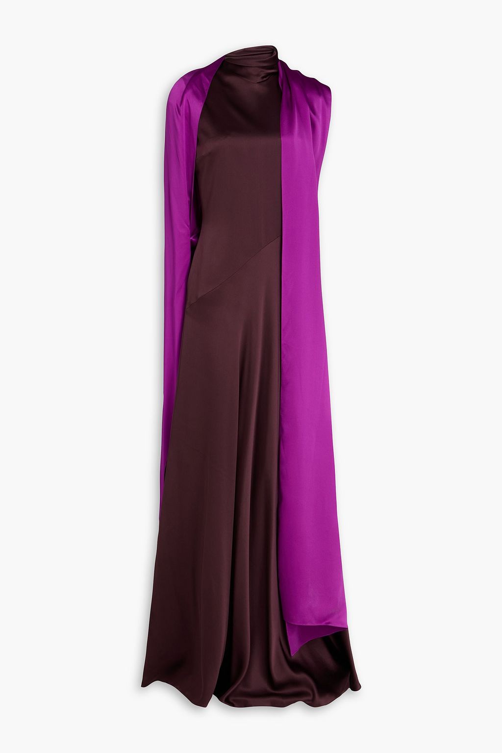 ROKSANDA シルクサテン マキシワンピース バイカラー ドレープ入り