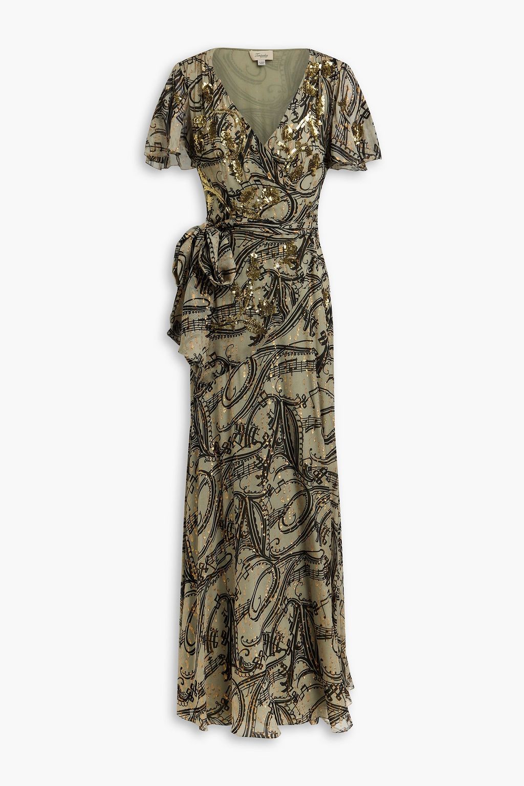 TEMPERLEY LONDON フィルクーペシルクシフォン マキシラップワンピース メタリック プリント入り