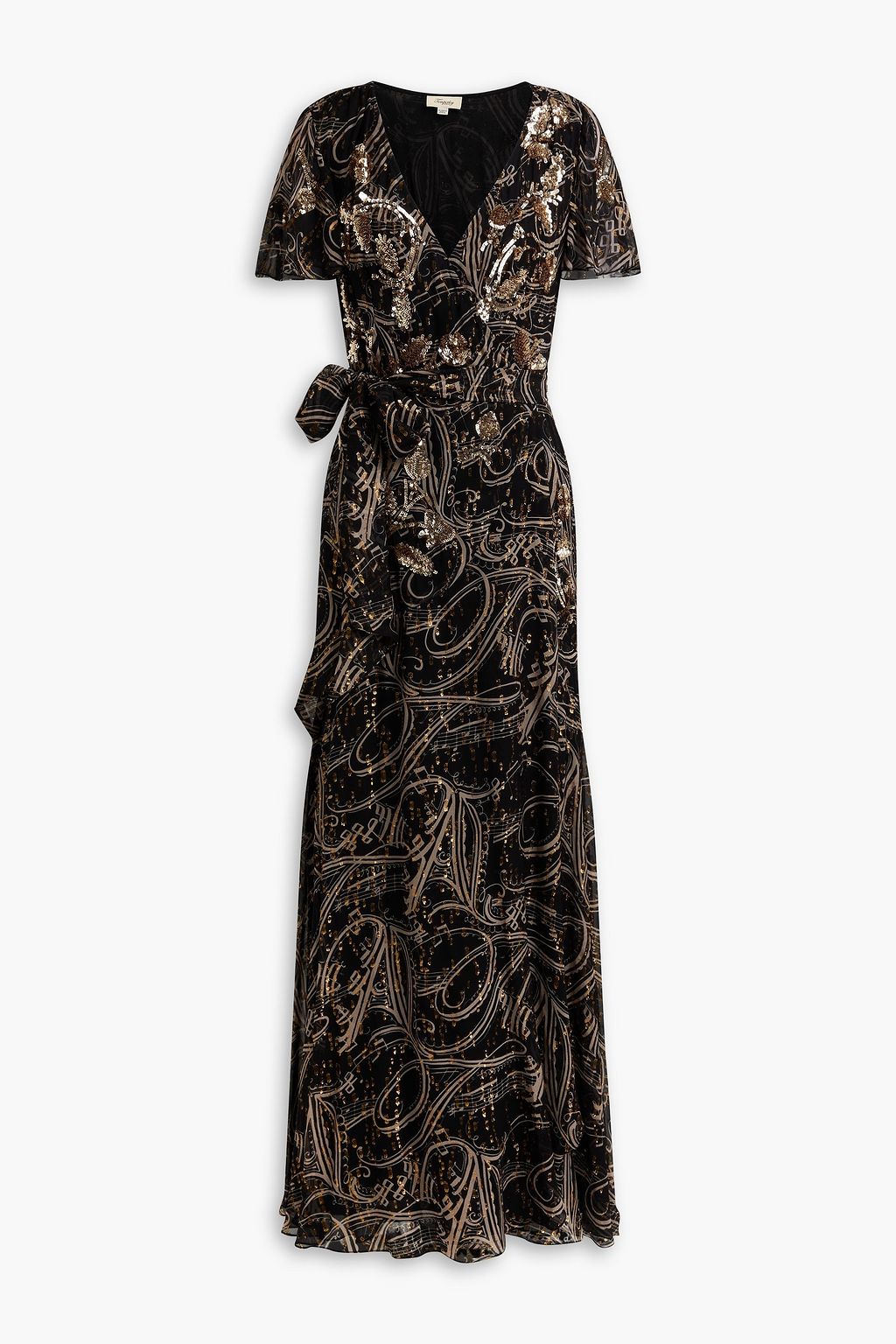 TEMPERLEY LONDON フィルクーペシルクシフォン マキシラップワンピース メタリック プリント入り