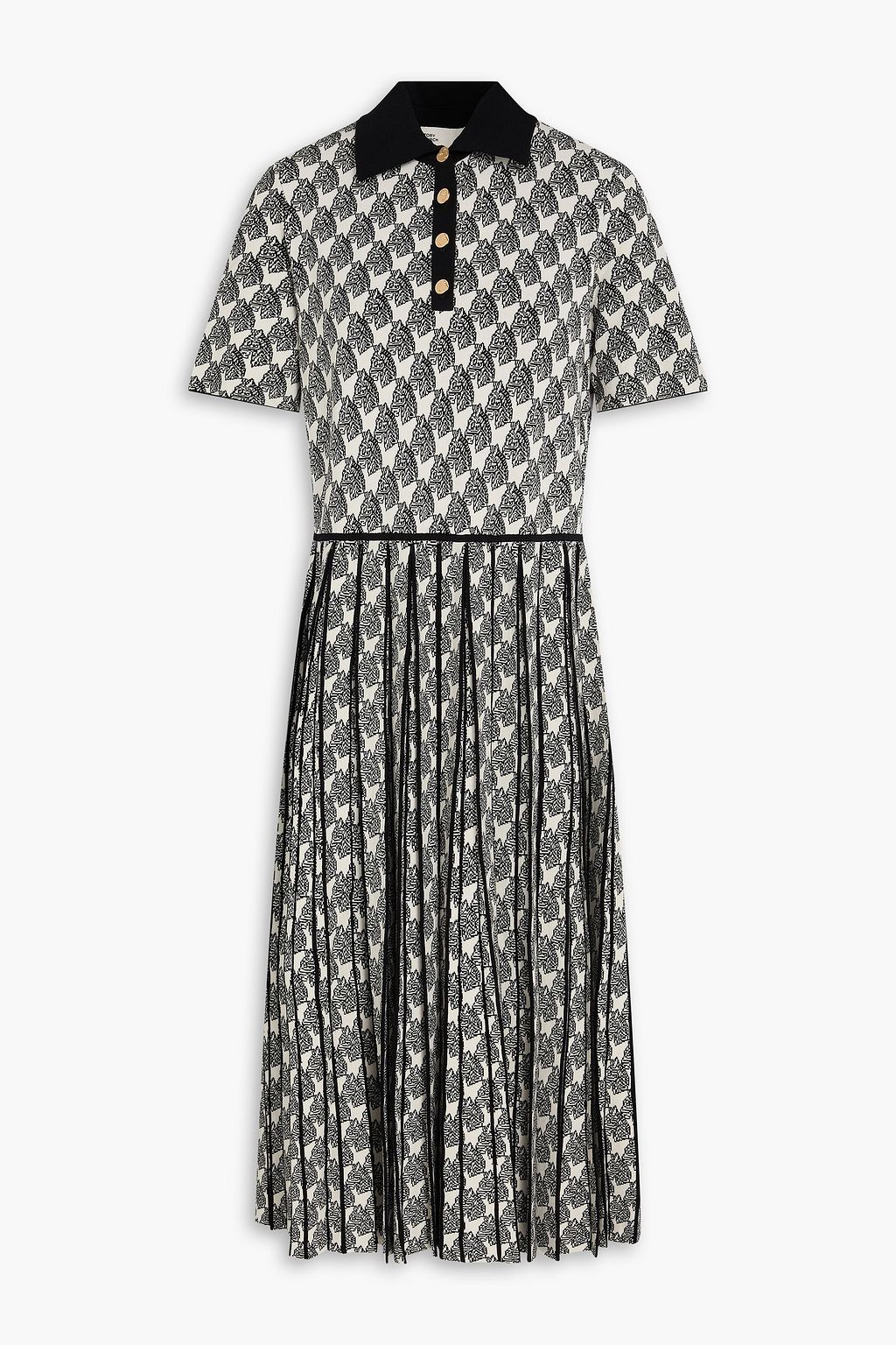 TORY BURCH ジャカードニット ミディシャツワンピース プリーツ入り