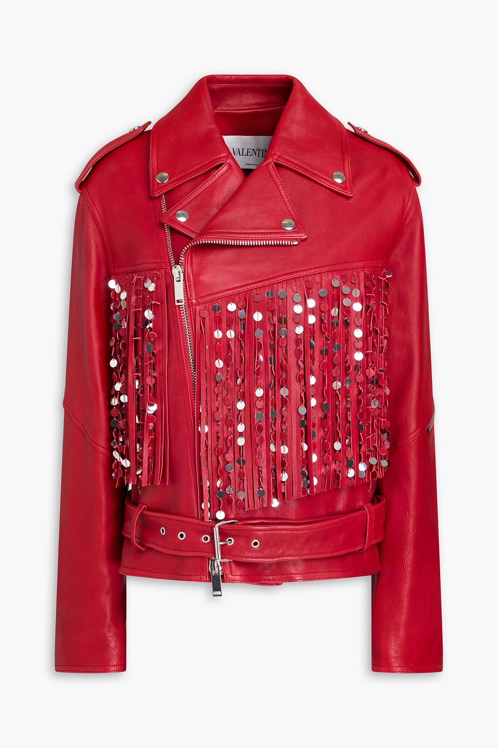 VALENTINO GARAVANI レザー ライダースジャケット フリンジ付き