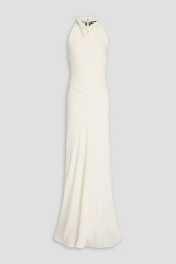 クレープデシン マキシワンピース ドレープ入り フローラルプリント