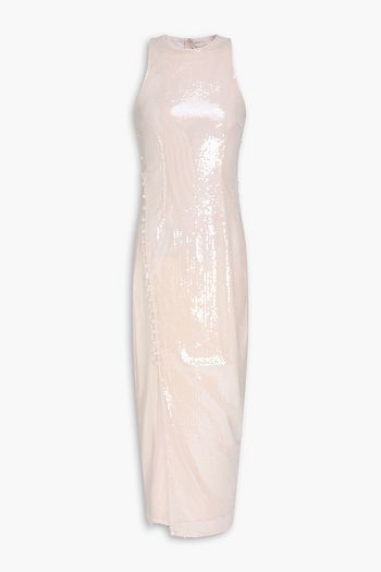 ストレッチメッシュ マキシワンピース スパンコール付き