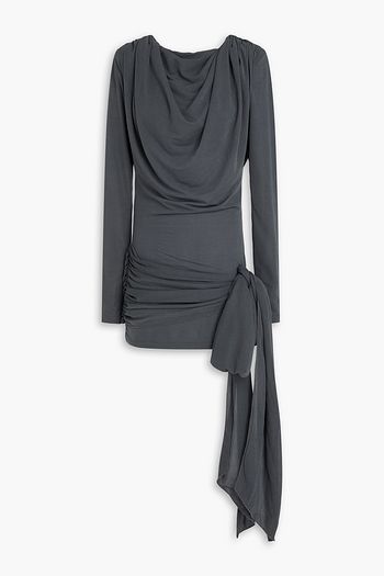 ジャージー ミニワンピース ルーシュ入り フローラルプリント