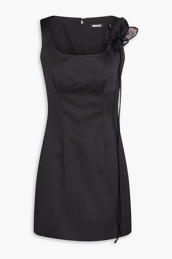 チュール ミニワンピース ルーシュ入り フローラルアップリケ付き