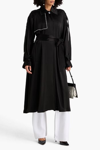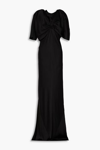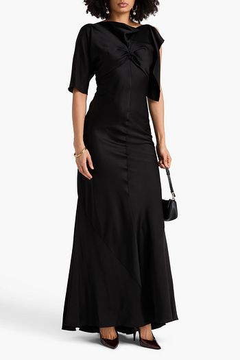サテンクレープ ホルターネック マキシワンピース プリーツ入り