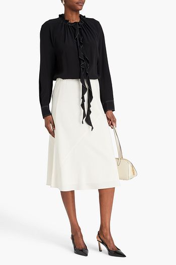 シルククレープデシン ワイドレッグパンツ プリント入り