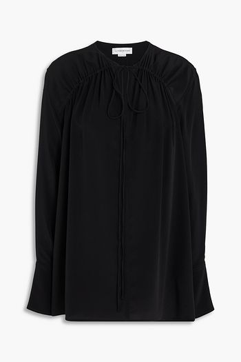 クレープ ミディワンピース ギャザー入り フローラルプリント