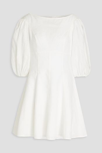 リネン カットアウト ミディ丈ワンピース ラッフル&シェル付き