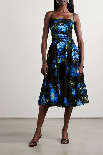 플로럴 프린트 스트레치 메쉬 미디 드레스
