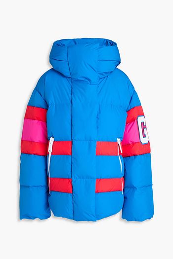 퀼팅 메탈릭 후드 다운 스키 재킷