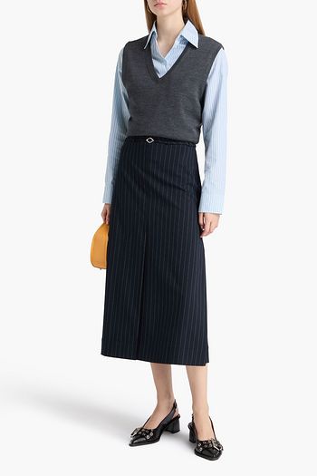 플리츠 디테일 리넨 실크 혼방 오간자 미디 드레스