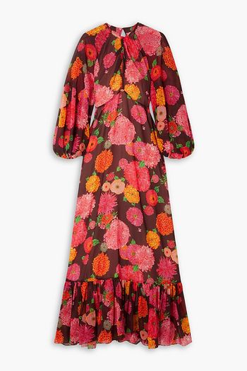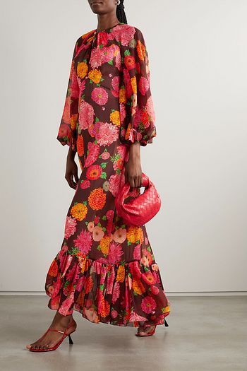 + 올레바 브라운 플로럴 프린트 실크 새틴 맥시 드레스