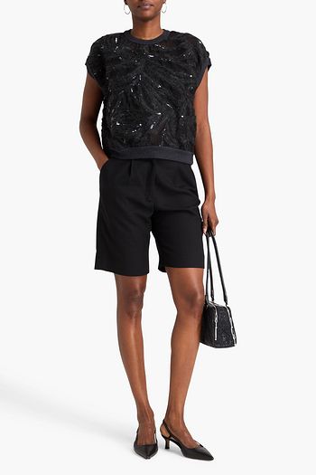 매듭 장식 리브 캐시미어 실크 혼방 터틀넥 스웨터