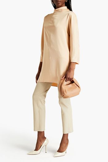 프레이드 폴카 도트 실크 크레이프 플리츠 브라 탑