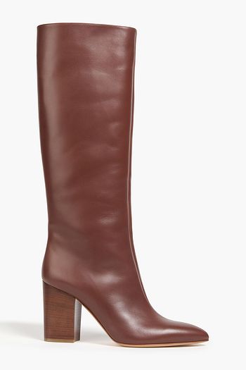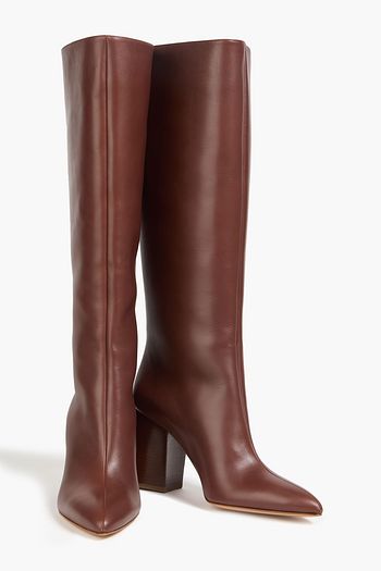 컨버터블 장식 디테일 페이턴트 가죽 오버 더 니 부츠
