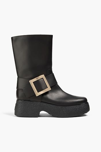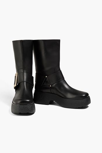 트레 비비에 버클 디테일 페이턴트 가죽 앵클 부츠
