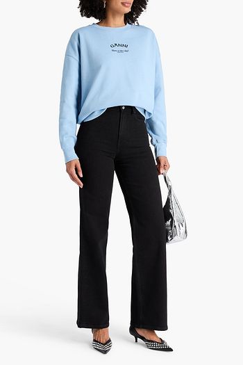 컷아웃 & 크리스털 장식 하이라이즈 와이드 레그 진