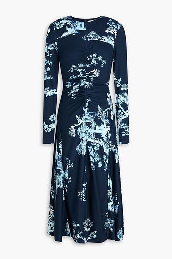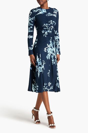 Draped floral-print jersey midi dress