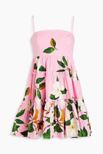 러플 디테일 플로럴 프린트 코튼 미니 드레스