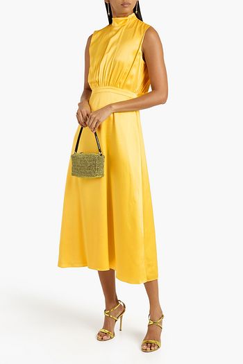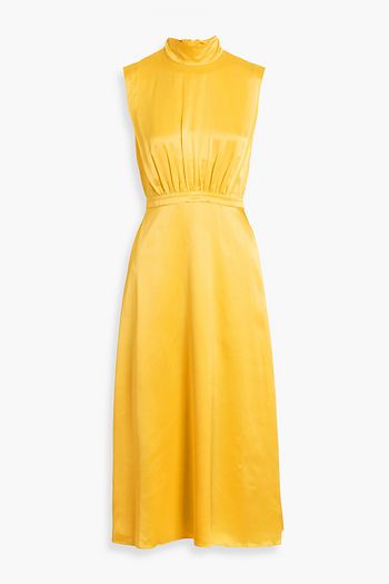 드레이프 디테일 실크 새틴 미니 셔츠 드레스