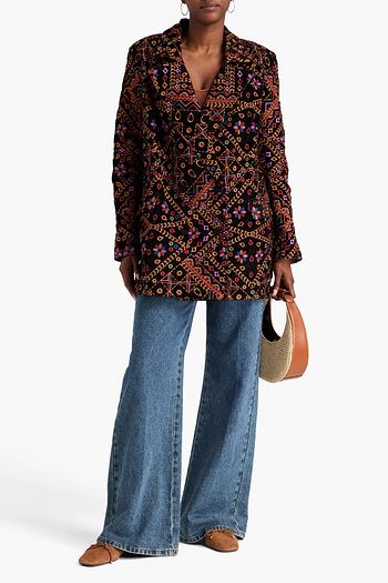 더블 브레스티드 메탈릭 레오파드 자카드 블레이저