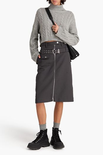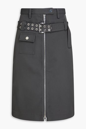지퍼 디테일 새틴 크레이프 미디 스커트