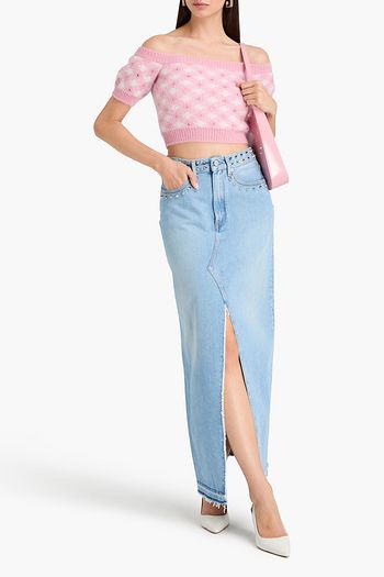 크리스털 장식 데님 미디 스커트