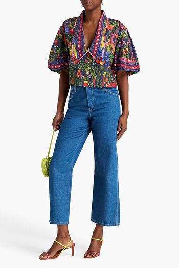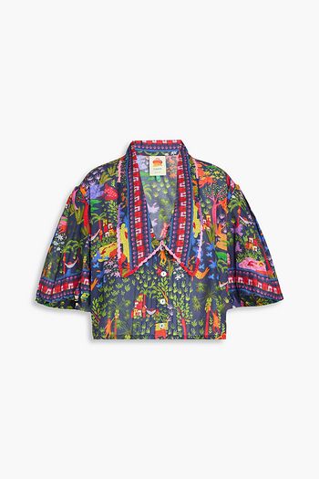 프린트 실크 트윌 크롭 셔츠