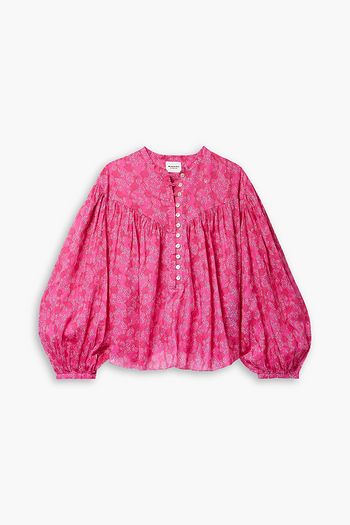 Stella 핀턱 디테일 플로럴 프린트 코튼 혼방 보일 탑