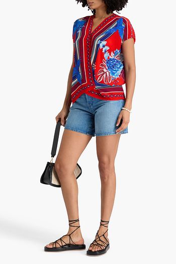 Crochet-trimmed floral-print silk-georgette top
