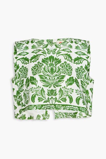 플로럴 프린트 리넨 혼방 저지 뷔스티에 크롭 탑