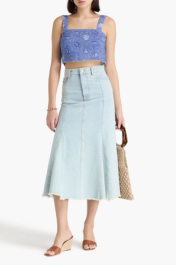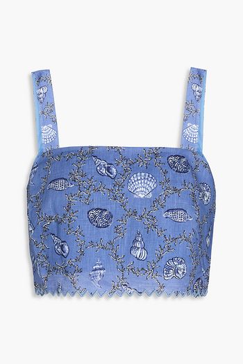 프린트 코튼 포플린 크롭 탑