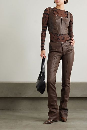 텍스처드 가죽 플레어 팬츠