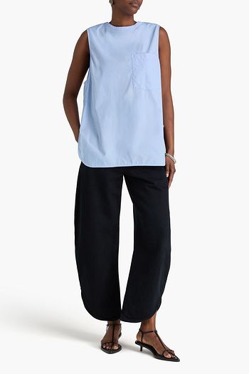 플리츠 디테일 울 트윌 테이퍼드 팬츠
