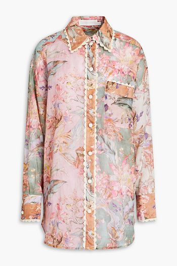 플로럴 프린트 리넨 실크 혼방 오간자 블라우스