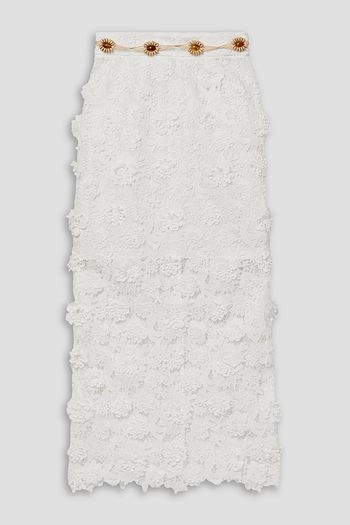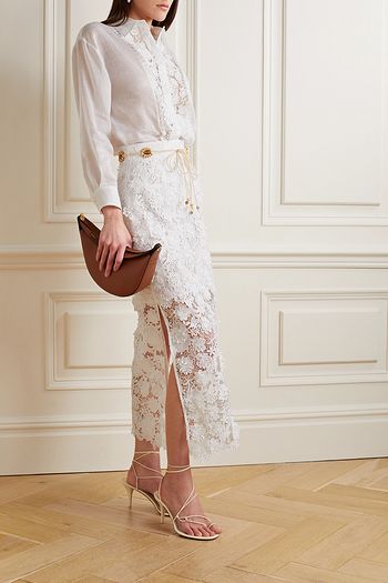 플로럴 아플리케 리넨 실크 혼방 미디 드레스