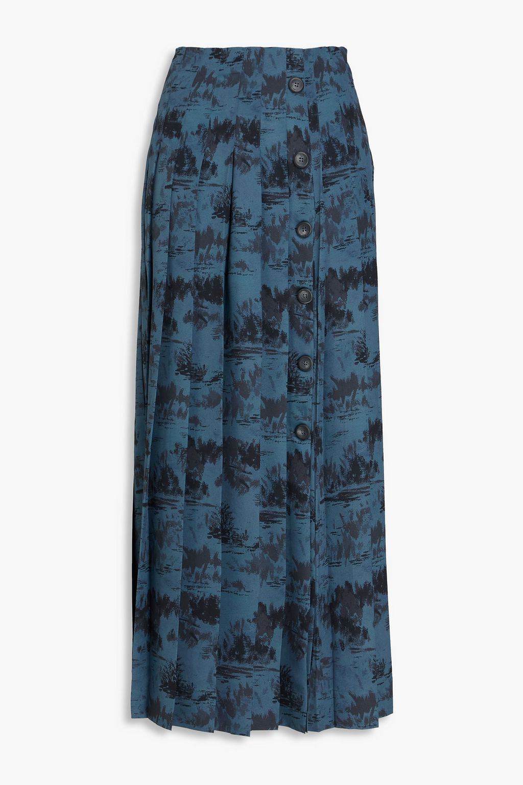 프린트 크레이프 드 신 플리츠 맥시 스커트