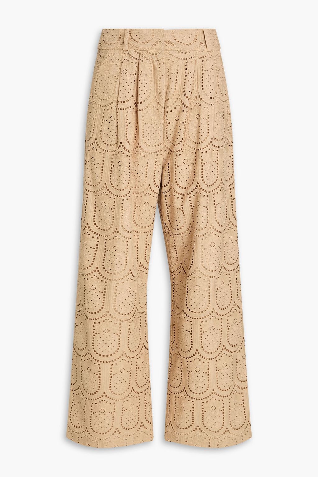 FARM RIO 플리츠 디테일 브로드리 앙글레즈 코튼 와이드 레그 팬츠