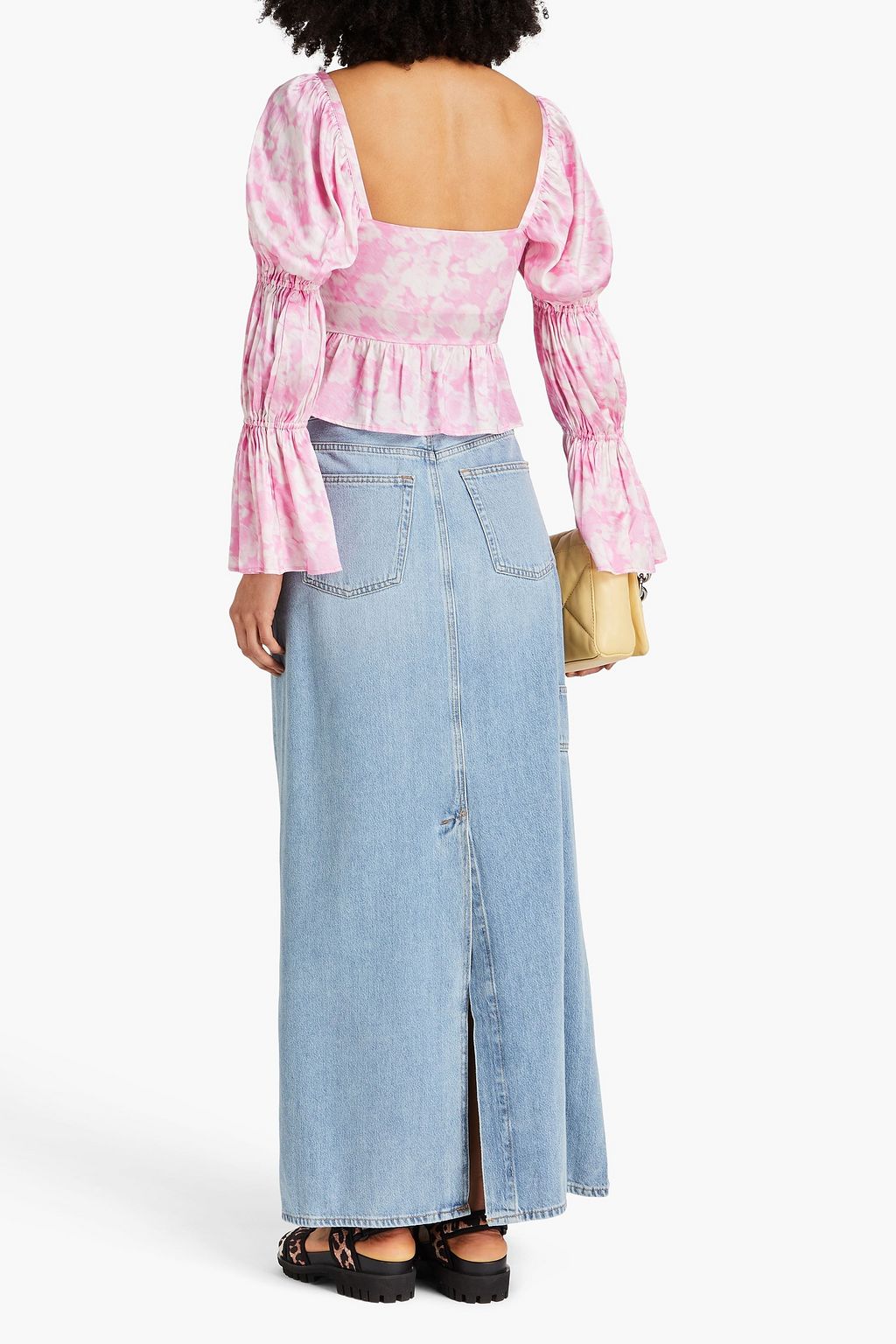 • GANNI 플로럴 프린트 스트레치 실크 새틴 탑