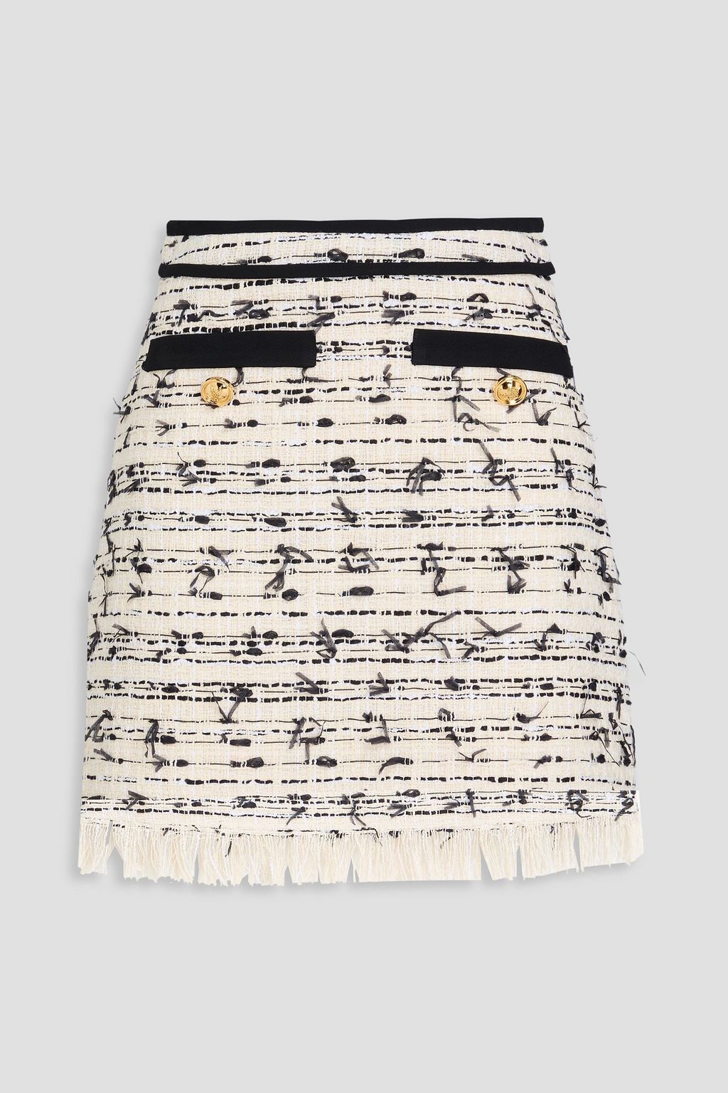 GIAMBATTISTA VALLI 프레이 디테일 코튼 혼방 부클레 트위드 미니 스커트