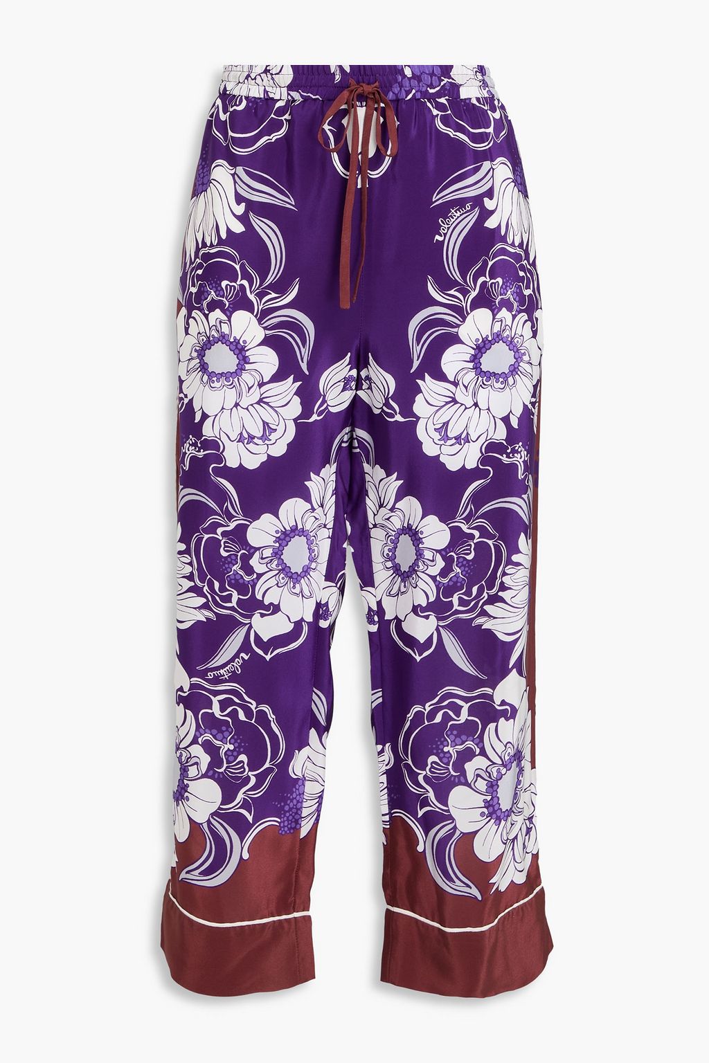 VALENTINO GARAVANI 플로럴 프린트 실크 크레이프 드 신 크롭 테이퍼드 팬츠