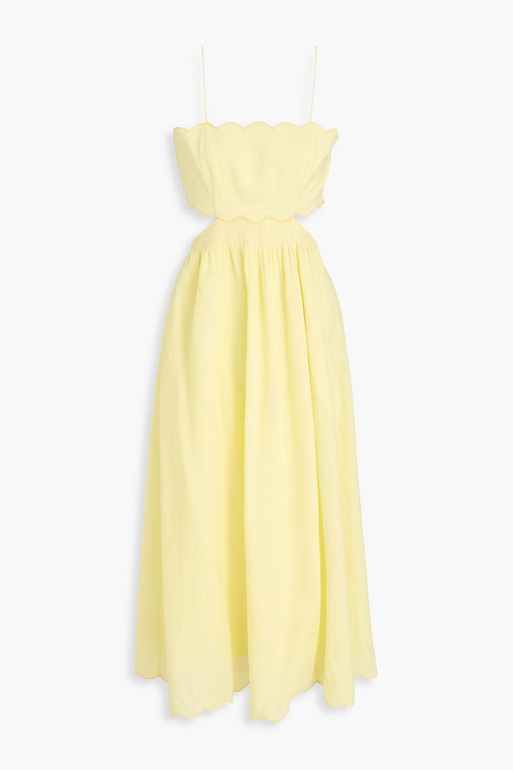 ZIMMERMANN 컷아웃 디테일 리넨 미디 드레스