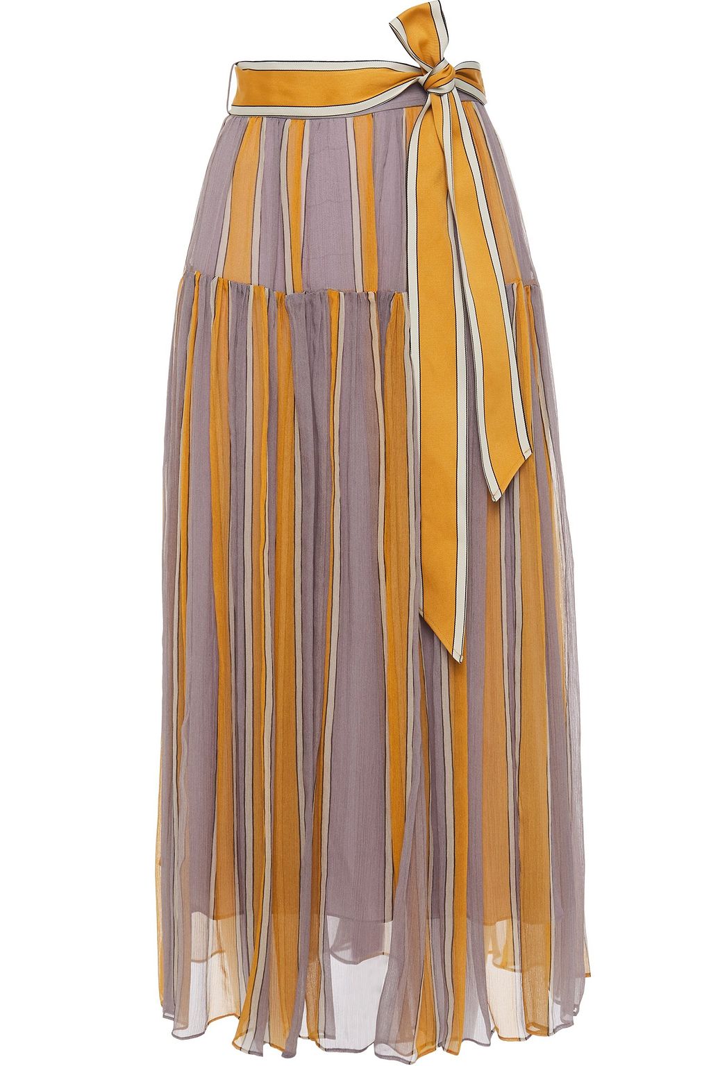 ZIMMERMANN Gathered striped silk-crepon midi skirt