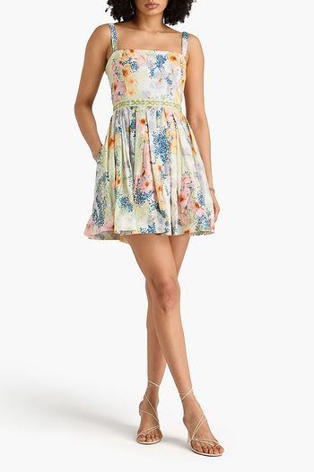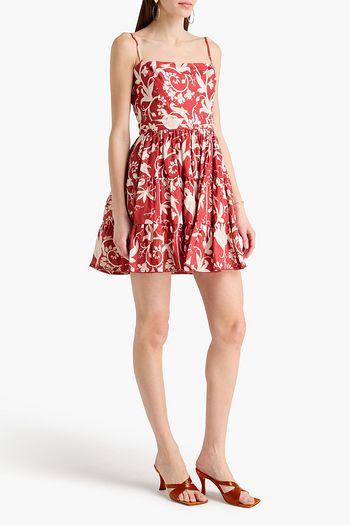 장식 & 러플 디테일 프린트 코튼 미니 드레스