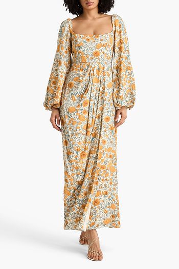 컷아웃 장식 플로럴 프린트 리넨 자카드 맥시 드레스